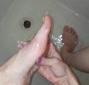 Ich habe ein kurzes Fußbad genossen und seife meine Füße schon ein Teilweise sind meine Füße ganz nah an der Linse ;)