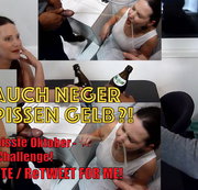 Glücklich abgefickt sitze ich am Tisch und trinke Bier mit dem XXL-Überraschungs-Ficker, was meinem Stammhengst so gar nicht passt. Er hatte sich das wohl anders ausgemalt. Nach dummer Diskussion lande ich in der Dusche und bekomme die Pisse-Strafe. Womit ich nicht gerechnet hätte? Dass der Negerhengst sich auch anstecken lässt und mir die Pissedröhnung verpasst. Und what the fuck? Auch Neger pissen gelb?! Ihr seid doch alle perverse Schweine, ihr verfickten Männer! Frauen zu Pissoirs machen könnt ihr, aber sich mal liebevoll um ein Mädel kümmern scheint wohl zuviel zu sein?! Wer kommentieren will, solls tun, wer nicht, der lässt es einfach. Wer bewertet bekommt ein Geschenk - meine Aufmerksamkeit! #piss #natursekt #black