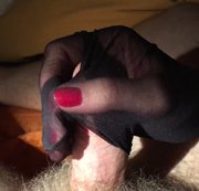 Ich wurde morgens wach und hatte eine schöne Morgenlatte. Sie sah das, lächelte, zog sich einen Halterlosen über die Hand und wichste mir schön die Sahne aus dem Schwanz.