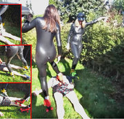 Endlich ist der Frühling da... das wird natürlich gleich ausgenutzt. Zu einem Dreier-Date mit JamieBlond und meinem Räderfan Rainerpelz. Jamie und ich haben hautenge schwarze Ganzkörperkondome an. Und an den Füßen Inliner und Rollschuhe. Rainer bekommt von Jamie und mir eine ausführliche Massage mit Rädern. Seeehr gesund und anregend... aber damit nicht genug! Nach der Massage bekommt er noch eine erfrischende Dusche... mit unserem Natursekt! Praktischerweise haben die Overalls einen Reißverschluss an genau der richtigen Stelle. Die Pipi-Dusche findest Du auf meinem anderen Profil 'Pissy-Cat'. Das Video heißt 'NS-Dreier in Latex - User in Pisse ertränkt".