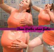 Weiße Flüssigkeit macht mich immer geil, besonders wenn die von meinem Mund auf meines Dekolette kommt.... hihih