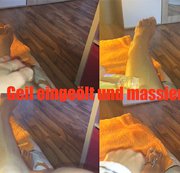 Meine Füße taten heut so weh das sie mal eine kleine Massage brauchen und Öl schadet meiner zarten Haut auch nicht , ein geiles Gefühl wenn das warme Öl so an meinen Beinen runter läuft , aber noch geiler ist es natürlich einen geilen Schwanz dazwischen zu haben , vielleicht lässt das ja deine Phantasie zu ? ;)