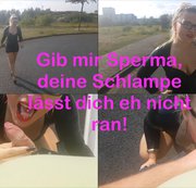 Ich wurde von der Arbeit abgeholt und hatte mein geiles Wetlook Kleid mit meinen Heels an und war sowieso schon ganz geil auf Sperma. Er wollte mich schnell wegbringen, weil seine Alte nicht wissen sollte das er mich fährt. Ich kann die Schlampe aber eh nicht ab und weiß auch das sie ihn nicht ranlässt. Da hab ich ihm ein Angebot gemacht...