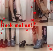 Huhu, hier bin ich! Junge, schlanke Frau mit einem Lächeln, das dir den Tag versüßt! Ich probiere die High-Heels an, weil ich weiß, dass du sie magst! Stimmt es? :-)