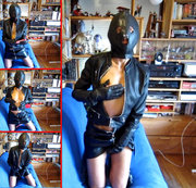 Ein Wunschvideo für meinen Fan Lederlover2! Ich bin von Kopf bis Fuß in Leder: Maske, Jacke, Minirock, Handschuhe und Stiefel. So knie ich mich vor Dich hin, Du kannst mir direkt in die Augen schauen. Das Leder auf meinen nackten Titties sorgt dafür, dass meine Nippel schon steif sind. Ich massiere sie noch mit meinen Lederhänden. Dann nehme ich meinen Vibrator. Stelle das richtige Programm ein... und rein damit in meine Muschi. Mit der anderen Lederhand bearbeite ich meinen Kitzler. Ist nicht einfach, dabei das Gleichgewicht zu halten. Mein Knie zittern.. aber ich halte bis zum Orgasmus durch! Ufff... eine ganz neue Erfahrung... Orgasmus auf Knien, nicht im Liegen...