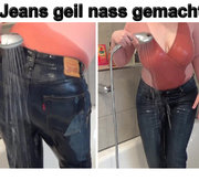 Hihihi heute hatte ich mal eine verrückte Idee hab einen sexy Body angezogen und dazu eine geile Jeans und dann beides in der Badewanne einfach nass gemacht. Hmm fühlte sich schon geil an wie das alles so langsam nass wird und sich dadurch noch enger anschmiegt. Guck mal der Body an meinen großen Brüsten und die enge Jeans an meinem prallen Arsch...na gefällt es dir? #Jeans #großeBrüste #Fetisch