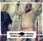 Ach wie herrlich, wenn die kleinen, fiesen Krallen, sich in dein Fleisch bohren. Ich habe viele, besondere, gemeine Klemmen und Klammern für dich und deinen alten Sklavenkadaver. Eine nach der anderen stecke ich an dich dran. Erst die Nippel, dann der Sack und dann der Schwanz. Überall an deinem Körper stecken die fiesen Dinger. Jede Berührung lässt dich aufschreien und deine Gedanken kreisen schon um den extremen Schmerz, wenn ich erstmal anfange sie langsam, oder auch schnell, wieder abzuziehen. 40 fiese Klammern stecken jetzt in deinem Sklavenkörper. Ich spiele damit, hänge Dinge an dir auf, als wärst du nur ein nutzloser Kleiderständer. Der Gedanke ans Wichsen ist dir längst vergangen? Das glaube ich dir gerne. Du fühlst den Schmerz an so vielen Stellen, dass du gar nicht weißt, wo es am meisten weh tut? Am Sack? Am Schwanz oder fehlt dir das Blut in den dicken Nippeln? Ich habe meinen Spaß mit dir, und während du im Hintergrund leidest, präsentiere ich meine sexy H*nter Boots.