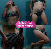 Ich übergieße meinen Körper mit der Milch und denke daran, dass es deine Sahne ist!! Wow!! Ich werde bald feucht sein! :-)