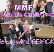 Das hätten sich meine beiden Mitarbeiter wohl nicht träumen lassen, als ich sie zu einem Mitarbeitergespräch einberufen habe! Auf Grund ihrer herausragenden Leistungen und dem Umsatzwachstum haben die beiden einen Wunsch frei! Das lassen sie sich nicht zweimal sagen und fallen über mich her! Hosen runter und erstmal die Schwänze ordentlich hart lutschen, bevor ich mich über den Tisch legen und richtig durchficken lass! Was ich wohl noch mit ihnen anstelle...?