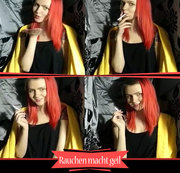 Sexy girl in roten Haaren raucht eine Zigarette und erwartet einen heißen Kerl, der gerne Feuer im Auge hat ... und in der Hose auch!:-)