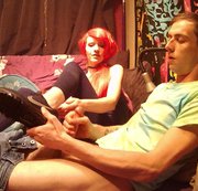 Geiler Handjob , Sperma auf die AIR Max gespritzt und von Rothaariger wieder sauber geleckt.