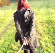 Ich wurde an einem Meister verborgt der mich im Plasticcoat mit schweren Handschellen die Hände am Rücken mit einer Eisenkette gefesselt spazieren führte durchs Grüne Gott sei Dank kam niemand vorbei wie peinlich wäre denn das gewesen ? (Kein Sex,kein Porno !!!) #fetisch#plastic#handschellen