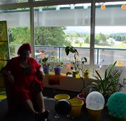 Hopsen auf den Bällen , Ballons mit Federballschläger traktieren !