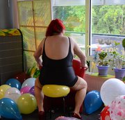 Mit dem Arsch Ballons gepopt.Massenpop!!
