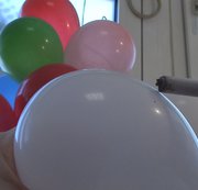 Die Kerze an den Ballon gehalten bis er platzt.. Interessant zu sehen was ein Ballon so aushält. Viel Spaß damit !!