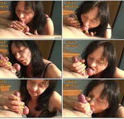 Very hard and painful ball sucking in this clip. I'm playing with his balls and cock and drive him to extremely huge cumshot while holding both his balls completely sucked in my mouth. #handjob #blowjob #cbt