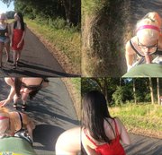 Oh man, ich war mit der süßen Alina L'amour auf dem Weg zu einer Party, während wir uns darüber unterhielten, was wir denn so abschleppen wollen. Ich erzählte ihr, wie gern ich doch mal wieder schlucken wollte, als uns auch schon ein Kerl entgegenkam, der ziemlich geil war. Also raus den Schwanz und ab in mein Blasmaul und Alina drückte nochmal richtig schön zu für den Deepthroat! Geiles Erlebnis, auch wie er dann einfach abspritzte und ich alle schlucken konnte. Was wir nicht wussten - wir wurden die ganze Zeit beobachtet und der rief die Polizei! Aber seht selbst...