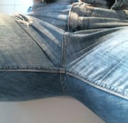 Ich liebe dieses warme Gefühl zwischen meinen Schenkeln! Heute war es nicht nur warm, sondern, es wurde richtig heiß! Das lag sicher daran, das die Jeans soooo eng an meiner nackten Puss y saß. Schau, wie sich die enge Jeans an meiner Milf Pussy dunkel einfärbt und der Sekt heraustropft! GEIL ODER?