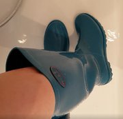 Schaut wie lange ich meine blauen Gummistiefel in der Wanne angepisst habe