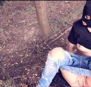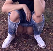 A desperate young girl peeing in the forrest is found by stranger and fucked hardcore until he cums on her face.