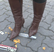 Nun ist es soweit. Mein erstes Crushing Video ist gemacht. Mir machte es wahnsinnig Spaß wie ich die Schnitten unter meinen Overknee-Stiefel richtig zerdrückt habe. Dieses Knirschen war einfach der Hammer. Ich dachte mir jedes Mal es sei dein Schwanz und deine Eier.