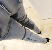 Ich kam nach Hause und musste dringend pinkeln, habe es schon Stunden angehalten. Aber jetzt wird es endlich Zeit! Was gibt es geileres als es einfach in meiner Lieblingsjeans laufen zu lassen. Dieses warme geile Gefühl! Das war so viel auf einmal das mir alles das Bein runter lief über meine High Heels! Eine riesen Piss Pfütze unter mir und meine Jeans zwischen meinen Schenkeln klitsch nass! Einfach geil findest du nicht auch?