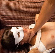 Wearing a leather slave mask that only has one single hole for the mouth & throat. A funnel & panties is forced inside, keeping it wide open with no means to close or avoid the stream of fresh piss flowing thru the funnel to the back of my throat, forcing me to swallow...