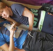 Alex and me talking and touching each other on the bed. Ive put my hand under his shorts and realized how warm and nice feeling it is, once again. My finger on his pink, sensitive hole gave him goosebump. I needed to make it pleasent for both of us and finally I came.