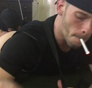 Watch me get on all fours and shove my sweaty ass right into this slaves face. Watch him roll his face around in my ass while I tug on his leash, drawing his face into my ripe cheeks. Ultimately I resign myself to letting him feast on my delicious ass, so I lay face down, ass up, and puff away on a cigarette while he buries his tongue in my shithole.