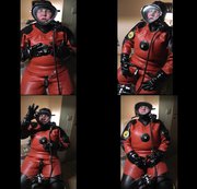 Mit Vollgesichtsmaske und Pressluftatmer werde ich von Latingo geil verwöhnt. Erst mit Powervibrator und dann mit Highspeedvibrator und großen, schwarzen Gummischwanz. Das stöhnen von mir und das heftige atmen durch die Schläuche wird immer lauter und ich stöhne und sauge immer wilder bei diesen geilen Orgasmen und zwischendurch dreht mir Latingo auch noch die Luft ab und die Maske saugt sich richtig fest an und es wird dadurch noch geiler für mich! Danach war ich echt platt und öffne die Maske und hole tief Luft bevor ich sie nochmals schließen um die geile Pressluft zu atmen was ich genieße. So in Gummi und mit Pressluft ist echt geil und ich liebe es.