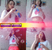 Welche Kugeln gefallen dir am meisten? Die Kugeln unter meinem T-Shirt oder die Kugeln aus dem Seifenblasen? ( OHNE TON )