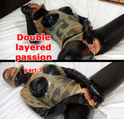 Rubberbitch wakes up in her latex bed. She is full dressed in latex, covered with a latex sheet. Sun is kissing her rubber body with its light. Feeling hot and dreamy in this sunny day, Rubberbitch wants to increase the degree of hotness. She notes the transparent latex catsuit and the solution is found instantly. To put on one more latex catsuit over the black one. Two masks, two pairs of gloves. The tighter the better. Rubberbitch wraps herself into the latex, touches her double-layered body, feeling more and more excited and horny. With every touch her hands move lower and at last reach the zip. Laying on the sofa, Rubberbitch unzippes catsuit and grab the trembling pussy. Hands become more emphatic, sighs change with moans. Orgasm's meant to be.