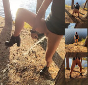 Elegant teen girl at the pond who is ready to show a super mega #squirt fountain. Touching the warm water of the pond, she rises up, exposing her hot excited #pussy. Hugging a pine tree and raising a leg, applying a vibrator to a hot excited oozing pussy, immersing this humming masturbator in measured and quick movements, which quickly brings me to the erupting power, which flows from me, pouring a #fountain six pounds ahead. Again and again, with sudden movements, I immerse deeply this powerful vibrator, which is pushed out by a stream of powerful water from the hot pussy. I am burning with this exciting stream of passion. She again and again, many times shoots her hot stream from her pussy into the forest for six pounds. I’m burning all, catch my hot stream from a little writing. #public #outdoor #pussyjob