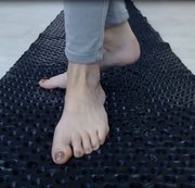 Nackte Füße auf Noppenfolie