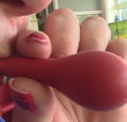 Ich habe mir gerade die Fußnägel leuchtend rot lackiert, damit mein neuer Nagellack auch ordentlich hält, dachte ich mir was ist besser geeignet als warmes Sperma. Mit meinen blanken Sohlen brachte ich den Prügel zum kochen bis er abspritzte.