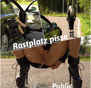 There was no toilet available at this Rastplatz. Bimborella had to do what adult girls do! Piss right on public Rastplatz