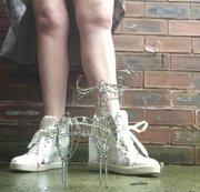 Lil Reindeer Crush Foot Shoe Fetish - this video see me smashing flat, my wire reindeer ornament, it crushes so beautifully under my sweet white wedge trainers! Something I take great glee in seeing
