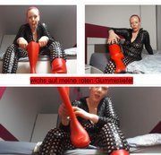 Komm schon du geile Drecksau, ich weiss dass dich das richtig geil macht wenn du an meine Gummistiefel denkst. Ich habe nun wieder neue geschenkt bekommen und diesmal in einem richtig schönem rot. Natürlich habe ich sie mir passend zu meinen Haaren ausgesucht und du hast das Privileg, dass du auf diese göttlich-geilen Gummistiefel wichsen und ev. sogar abrotzen darfst.