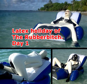 This day has finally come, and the well deserved holiday has started. The Rubberbitch came to her favourite tropical resort, located on a small island in the middle of south sea, isolated and deserted. She decided for herself, that she is going to spend all her holiday wearing nothing but only latex. So in the first morning at the sea she went to the shore, dressed in her new snow-white latex catsuit with hood and gloves. Under hot tropical sun she drifted on the shallow waters resting on her inflated mattress, and her mind was clear and filled with lust. Her hand reached her crotch and she started to caress her hot wet pussy, then she inserted the inflated dildo and fucked herself, but it wasn't enough. She put on the 'hamster' gasmask connected with breath-through dildo, and continued to fuck herself, inhaling her own smell, thick and hot...