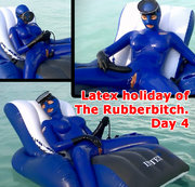 Feeling of emptiness in her pussy was growing with each day. The Master never allowed The Rubberbitch to walk unfilled for such a long period. On the fourth day she came to the beach on sunset, dressed in her blue Fantastic Rubber catsuit with hood, socks and gloves, and took the biggest inflatable dildo with her. Floating on the mattress over the shallow waters, she unzipped the crotch of the catsuit, inserted the dildo in her soaking wet pussy and pump it to the maximum, then pump several times more. She finally felt her pussy is completely filled, and it was such a pleasant feeling...