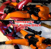 Recently The Rubberbitch has invited her friend Space Fox to visit her. This girl loves latex and bondage games as much as The Rubberbitch herself do, so she came already encased in tight red latex under her street clothes, even with hood and gloves. The Rubberbitch meet her dressed already in her yellow latex catsuit as well. Girls started to look through the bunch of fetish magazines brought by Space Fox, discussing most interesting pictures. Doing this girls became quite aroused, so they moved to a living room and started to caress each other with their latexclad hands, then inserted anal toys to each other's ass... And the fun has just begun!