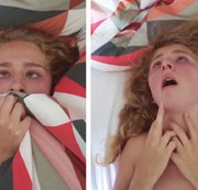 Falls ihr euch mal gefragt habt wie eure Finger aussehen wenn man eine Stunde an meiner Fotze herumgespielt hat, die Antwort ist: Als hätte man zu lange gebadet :P So viel zum Beginn des Videos. Ich kann mich kaum noch erinnern was dann passierte mein Kitzler war wohl schon so empfindlich dass ich von den geringsten Berührungen Orgasmen-Kontraktionen hatte und naja der rest ist schwer zu beschreiben macht euch selbst ein Bild ;)