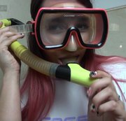 Something I have wanted to try for a while... smoking through a snorkel while wearing a dive mask! I picked a really cute outfit for this, if I do say so myself! A skin tight cressi lycra rash guard, a cute victoria secrets thong and a matching mask / snorkel combination :-) I put on the mask and slip the snorkel between my lips, I love this snorkel, so I show you my lips wrapped around it close up, before lighting up a cigarette and blowing the smoke out through the snorkel! #scuba #wetsuit #rashguard #divemask #snorkel #fetish #smoking