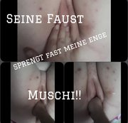 Auch ich wollte einmal in den Genuss einer Faust kommen....schade nur, dass sich das schwieriger gestaltet hat als gedacht....Gefesselt und wehrlos lag ich da, als seine Finger sich immer weiter in mich reinbohrten..Meine enge Muschi hat Probleme seine riesige Hand aufzunehmen....Geil war es trotzdem...