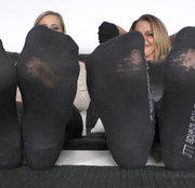 Dieser Clip ist mit großen POV Szenen. Ich und meine Freundin Lady Tyra sind auf dem großen Sofa. Wir tragen unsere schwarzen Socken. Wir tragen die Socken für dich seit mehreren Tagen. Also jetzt kannst du an ihnen schnüffeln. Ich und Tyra zeigen dir unsere Socken in Nahaufnahme. Du kannst unsere Sohlen sehen und wie wir mit unseren Zehen spielen. Am Ende dieses Clips werfen ich und Tyra die Socken zu dir. Schöne Nahaufnahmen und tolle POV Szenen.