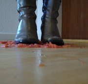Crushing ,Füsse, Tomaten es spritzt und matscht