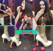 Heute zeige ich Dir wie ich und meine Freundin Tomaten crushen. Ich habe ein ein paar Tomaten besorgt. Meine Heels sind für´s trampling wie gemacht. Meine Liebste hat dafür ihre langen Lackstiefel für Dich angezogen. Schaue zu wir wir ein paar Tomaten unter unseren Füssen zerquetschen.