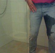 Kennst Du mein Video 'Stretchjeans vollpissen + NS-nass Unkraut zupfen'? Hier die Fortsetzung dazu. Ich gehe in den vollgepissten Sachen in die Wohnung. Ist gar nicht so einfach, die klatschnassen Sachen auszuziehen. Schon die Halbstiefel kleben an meinen Füßen. Ich leere sie aus, auch die Socken sind total durchnässt. Ich wringe sie aus. Die Jeans auszuziehen ist besonders schwer. Bitte nicht lachen wegen meinen komischen Verrenkungen! Die Jeans sind so von meinem Goldenen Saft durchtränkt, dass ich sie auch auswringen kann, trotz des dicken Stoffs. Ich hatte mir extra einen alten Baumwoll-Slip angezogen. Der saugt sich schön voll - Du siehst ganz genau, wie nass er ist. Dann ziehe ich ihn auch noch aus. Handtuch, bitteschön...