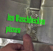 Mein Schwanz ist zwar nicht dreckig aber ich hängte ihn ins Waschbecken und dann musste ich aber pissen also lies ich den Natursekt einfach raus spritzen bis ich leer war und nach der Sauerei hab ich meinen Penis noch abgewaschen bis er wieder ganz sauber war leider wurde er nicht trocken also steckte ich ihn nass in die Hose.