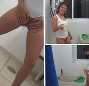 am liebsten wasche ich meine wäsche nackt. dabei zeige ich schlppüis mit lecker muschisaft drin